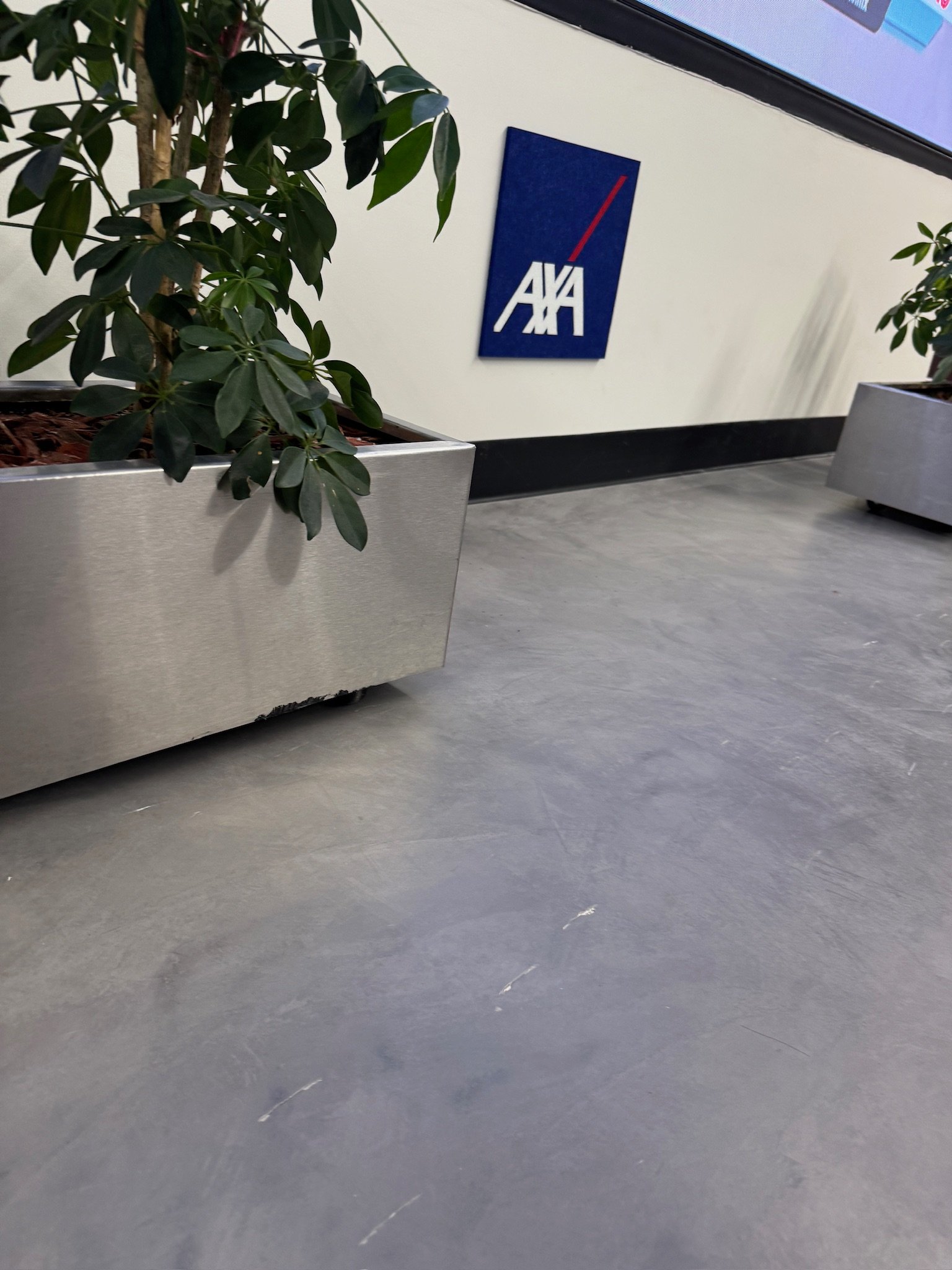En las instalaciones corporativas de Axxa Colpatria – Seguros, realizamos la aplicación de microcemento en 400 m² de piso, destinados principalmente a salas de capacitación y áreas de uso intensivo. El objetivo fue crear un entorno moderno, resistente y con una imagen profesional que reflejara los valores de la empresa: confianza, innovación y excelencia.