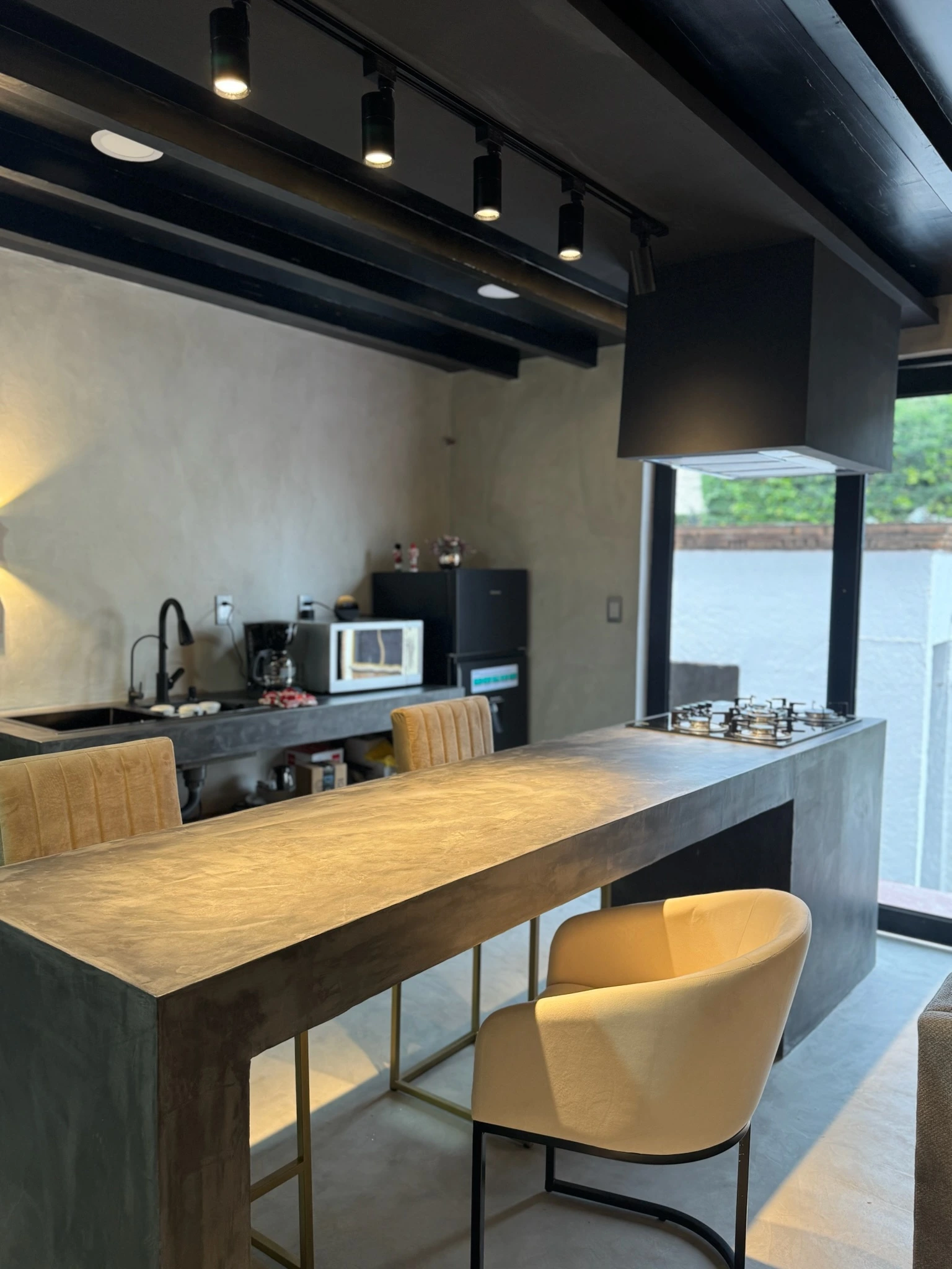 En este Airbnb Boutique ubicado en Tlalpujahua, se realizó la aplicación de microcemento en pisos, muros y en la barra encimera, creando un espacio con estética continua, moderna y perfectamente integrada. El objetivo del proyecto fue lograr un ambiente sofisticado, duradero y de mantenimiento sencillo, ideal para un alojamiento de alta rotación que busca combinar diseño y funcionalidad.