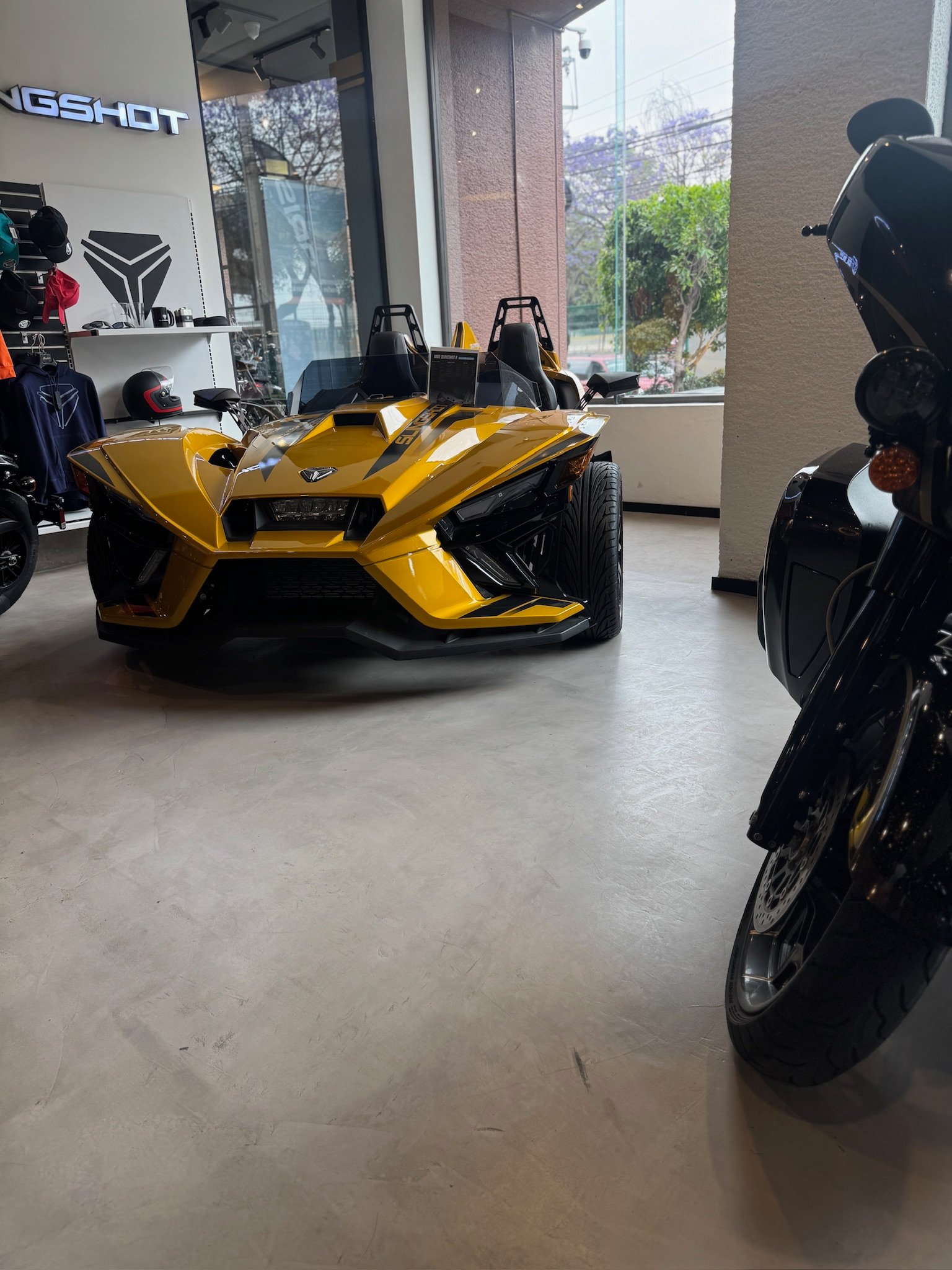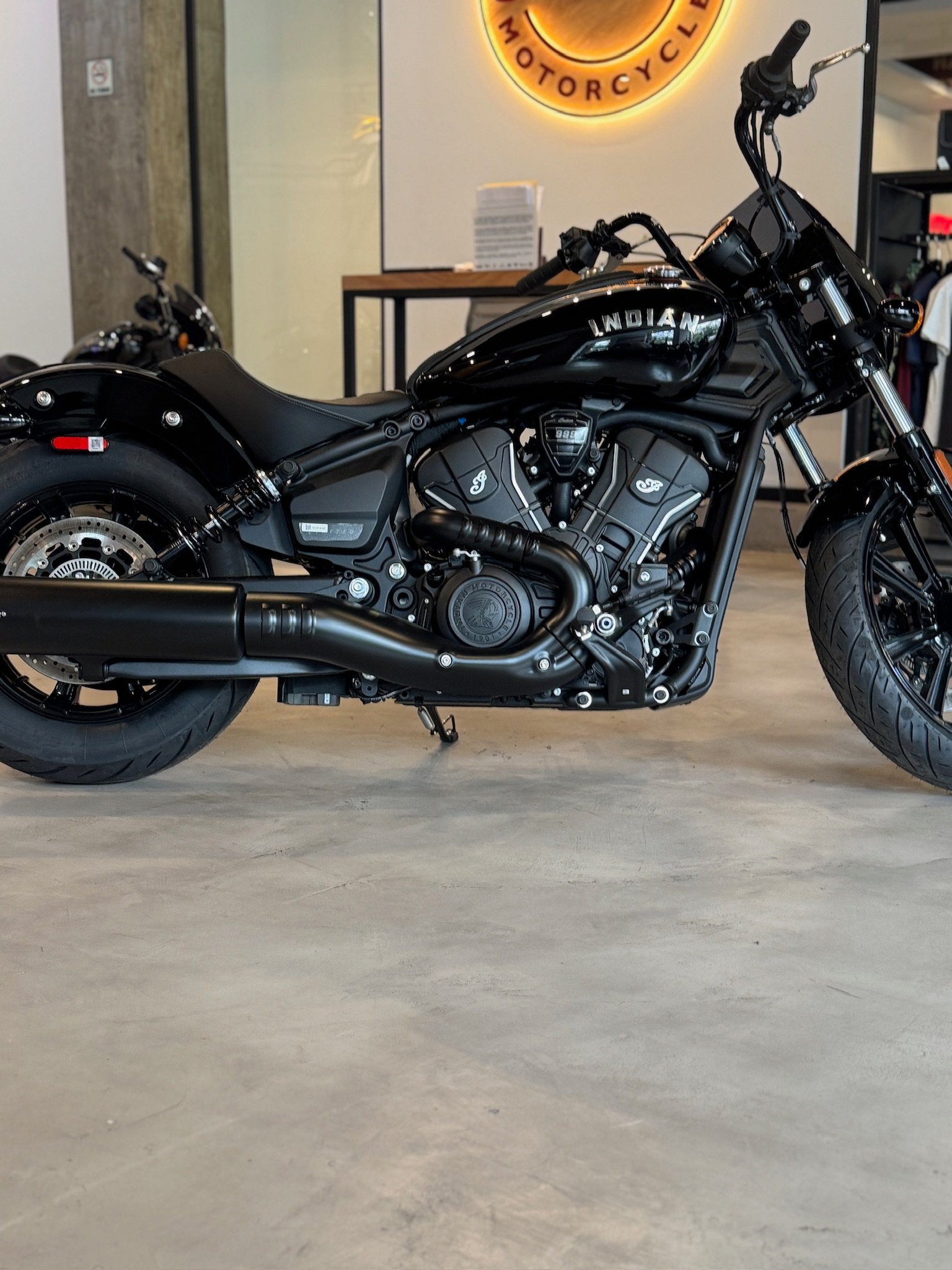 La continuidad visual del piso crea un entorno donde cada motocicleta se destaca sin distracciones y donde el diseño minimalista permite una mejor apreciación del producto.